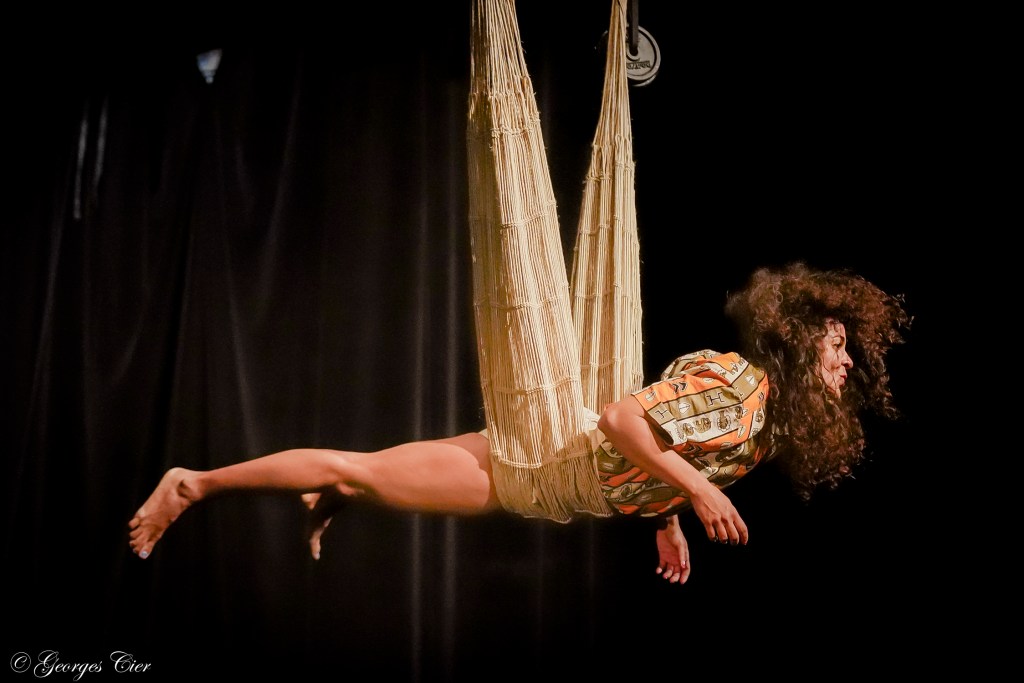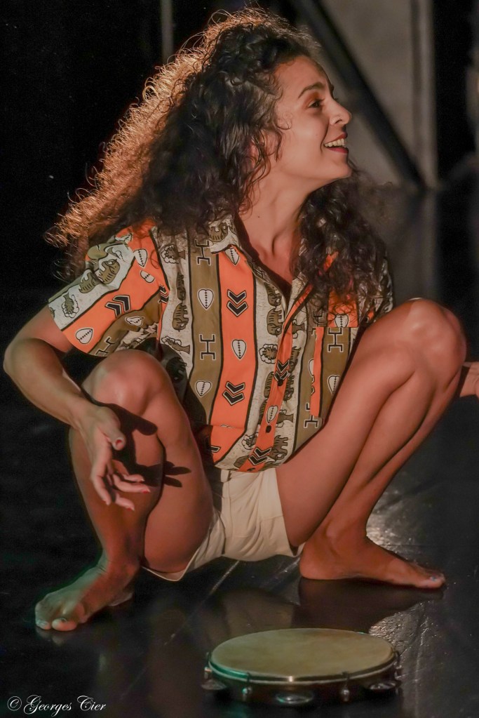 Ela conta que entendeu como funcionava a produção do espetáculo na Europa e escreveu o projeto estrategicamente para que desse certo. A artista produziu, conseguiu apoio e estreou na Bienal Internacional de Circo, na França, em janeiro de 2025. Maïra, que fica acocorada na maior parte do tempo das apresentações, que duram aproximadamente 50 minutos, se utiliza de elementos brasileiros, como pandeiro e rede, e veste um macaquinho marrom, quando não está com a icônica camisa estampada, de botão, do líder quilombola e poeta piauiense Nego Bispo, que a esposa dele, Dona Edileuza, a presenteou, após ele “ancestralizar”, termo utilizado pela família para se referir ao seu falecimento, aos 63 anos, em 2023.