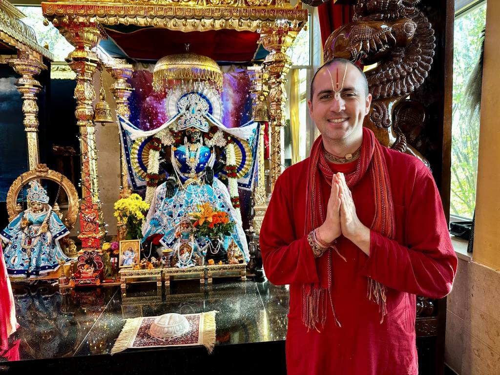 “Guruji brinca, às vezes, quando me vê comendo prasad, ele diz: ‘olha só que mentiroso, ele está comendo’. Uma vez eu perguntei a ele: ‘Você faz essa piada, mas os vaishnavas acreditam que o prasad contém o próprio Deus. Se eu recusar o prasad, serei ofensivo e estúpido, não é?’ E Guruji disse: ‘Sim, você não pode recusá-lo.’”