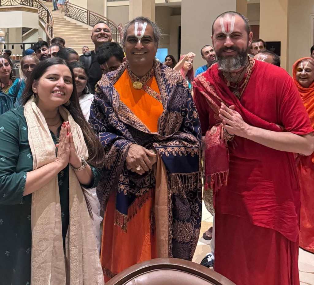 Ao voltar para casa, que ficava a 15 minutos da sede da Bhakti Marga, o casal recebeu a visita inesperada de quase todos os moradores do templo, e fizeram um kirtan de duas horas. “É assim que você vê como nossos devotos são incríveis e apaixonados. Fechamos as janelas e cortinas, tocamos, cantamos e choramos, todos juntos. A sensação de ter uma família espiritual tão incrível foi uma das coisas mais intensas e maravilhosas que já senti na vida. Quando cantamos o nome de Deus, de Krishna e de Guruji, senti uma felicidade de fazer parte de uma família espiritual tão profunda, de estar tão perto de Deus”.